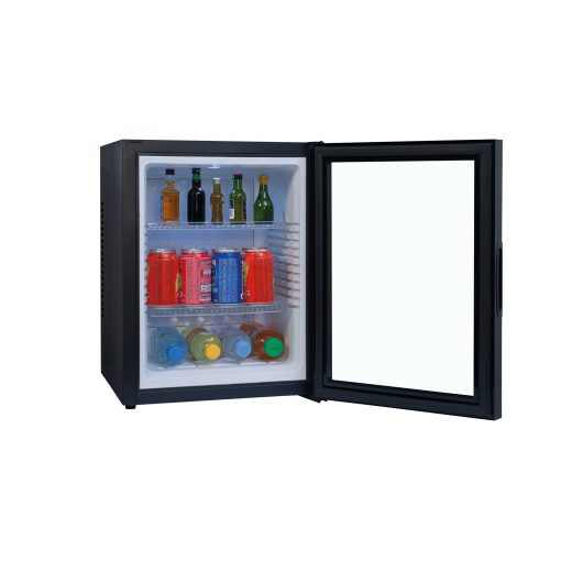 Det kompakte design gør minibaren meget nem at placere og let at flytte rundt på. Effektiv køling og støjsvage blæsere gør den meget lydsvag. Minibarens temperatur kan indstilles mellem 5°C og 17°C. Døren kan desuden hænges om efter behov.
