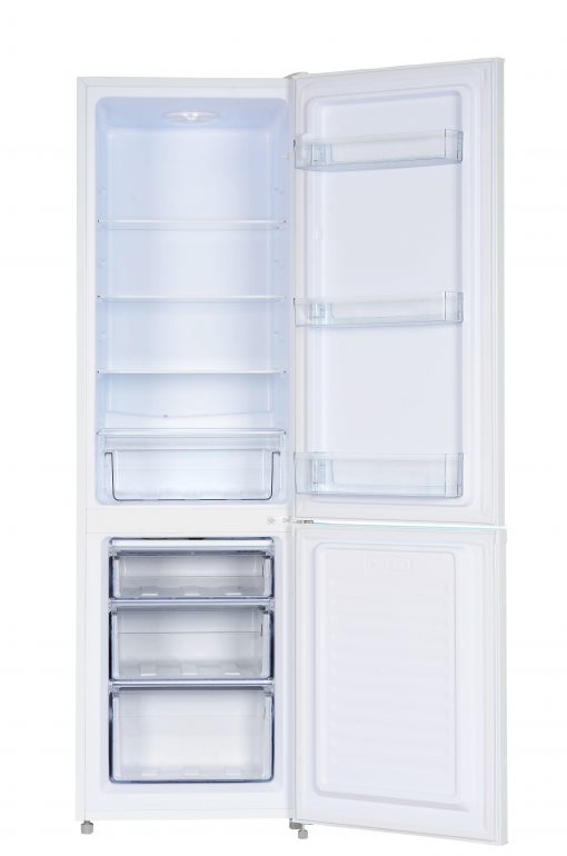 Køleskabet er udstyret med tre hylder, en praktisk grøntsagsskuffe og flere dørhylder til flasker og småting.