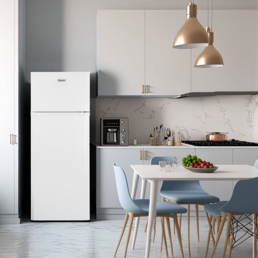 Med et lavt lydniveau på kun 39 dB glider dette kombiskab problemfrit ind i hjemmemiljøet. Perfekt til åbne køkkenløsninger eller mindre rum, hvor støjsvag drift er vigtig.